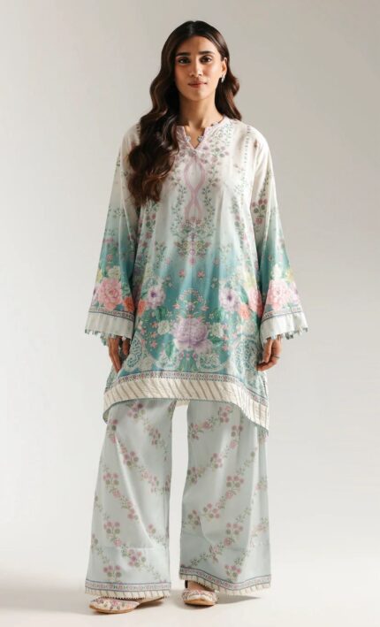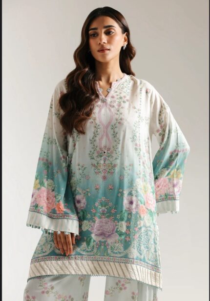 Vanilla Ice Floral Embroidered Kurta with Printed Shalwar – XS