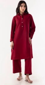 Modern minimalism in rich maroon: crafted from slub-blended jacquard, this coordinated shirt, trouser and dupatta trio delivers understated luxury with a relaxed, basic cut for all-day comfort and style.