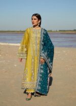 Aqua Bloom Embroidered Lawn Shirt & Cambric Trouser with Monark Dupatta - Goher-e-nayab Collection